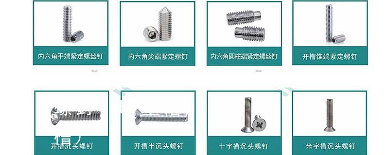 1)開槽普通螺釘多用于較小零件的連接。它有盤頭螺釘、圓柱頭螺釘、半沉頭螺釘和沉頭螺釘。盤頭螺釘和圓柱頭螺釘?shù)尼旑^強度較高,瑁在普通的部件連接上;半沉頭螺釘?shù)念^部呈弧形,安裝后它的頂端略外露,且美觀光滑,一般