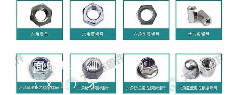 六角法蘭面螺母細(xì)牙GB/T 6177.2—2000;1型六角開槽螺母—A和B級(jí)GB 6178—86;1型六角開槽螺母—C級(jí)GB 6179—86;2型六角開槽螺母—A和B級(jí)GB 6180—86;六角開槽薄螺母—A和B級(jí)GB 6181—86;2型非金屬嵌件六角鎖緊 按牙距分類:標(biāo)準(zhǔn)牙、正規(guī)牙、細(xì)牙、極細(xì)牙和反牙。按材質(zhì)分類:不銹鋼六角螺母和碳鋼六角螺母、銅六角螺母、鐵六角螺母。按厚薄分類:六角厚螺母和六角薄螺母。按使用方法分類:熱熔銅螺母、熱壓銅螺母、嵌入式銅螺母及超聲