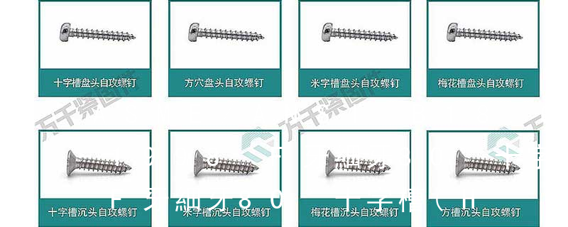 六角花形等;內扳擰:一字槽、十字槽H型、十字槽Z型、十字槽F型、四方槽、復合槽、內花鍵、內六角花形、內三角、內六角、內12角、離合器槽、六葉片型槽、高扭矩十字槽等。3、螺紋種類螺紋種類繁多,有自攻螺紋(