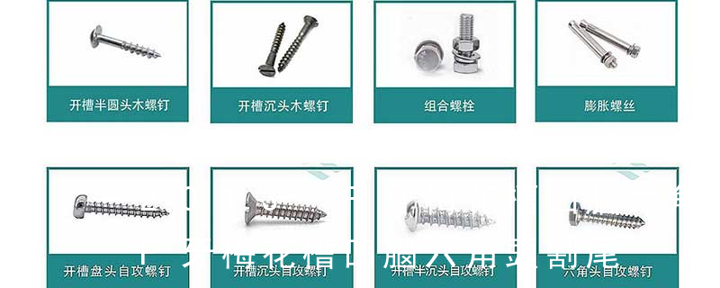 主要分類包括普通螺絲、機螺絲、自攻螺絲和膨脹螺絲三種。有頭螺釘Cap screw 過去限于全牙的扣件。六角頭螺釘Hex cap screw與大六角螺栓Hex bolt 顧名思義為頭部為六角型的外螺紋扣件,設計為使用扳手轉動。依照ASME B18.2. 不銹鋼三角牙螺絲 Stainless Steel Tri-Lobular Thread Screws 型號說明 P是指頭型是PAN頭;A是指尖尾牙,B是指平尾牙,即PA圓頭尖嘴鋼牙,PB圓頭平嘴鋼牙。自攻類:◆圓頭自攻螺絲PA ◆圓頭平尾自攻螺絲PB ◆圓頭割尾自攻