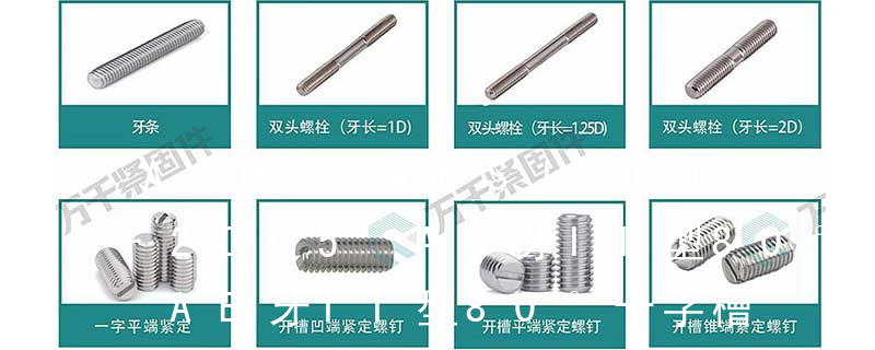 ④ 螺釘牙型 A:自攻尖尾(日標第1種)疏 AB:自攻尖尾(日標第4種)密;B:自攻平尾(日標第2種)疏;C:自攻平尾(日標第3種)密;P:雙絲牙 HL:高低牙 U:菠蘿牙紋;T:自攻平尾切腳 AT:自攻絲尖尾切 1)開槽普通螺釘多用于較小零件的連接。它有盤頭螺釘、圓柱頭螺釘、半沉頭螺釘和沉頭螺釘。盤頭螺釘和圓柱頭螺釘的釘頭強度較高,瑁在普通的部件連接上;半沉頭螺釘的頭部呈弧形,安裝后它的頂端略外露,且美觀光滑,一般用