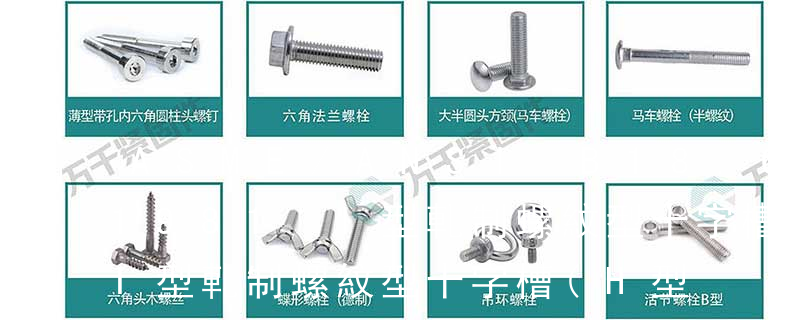1、Flat:平頭 (鎖入后,頂部與工作件齊平)2、Oval:色拉頭、O頭、半沉頭 3、Round:圓頭 4、Pan:圓扁頭 5、Truss:大圓扁頭 6、Hex:六角頭 A-5:Finish Code/外觀處理。公制自攻螺絲 :于品名后方直接標(biāo)示 Tapp 六角花形等;內(nèi)扳擰:一字槽、十字槽H型、十字槽Z型、十字槽F型、四方槽、復(fù)合槽、內(nèi)花鍵、內(nèi)六角花形、內(nèi)三角、內(nèi)六角、內(nèi)12角、離合器槽、六葉片型槽、高扭矩十字槽等。3、螺紋種類螺紋種類繁多,有自攻螺紋(