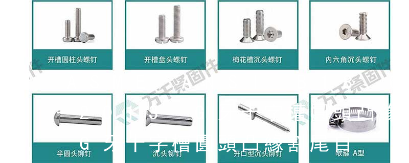 十字槽圓頭機絲牙螺釘 cross recessed round head screw手擰螺絲(拇指螺絲) thumb screw鏈帶螺釘Collated screws標準規范標準就是規范,每個國家和部門都有自己的標準。GB—中國國家標準(國標)ANSI—美國國家標準(美標)DIN—德國國家標準( 主要分類包括普通螺絲、機螺絲、自攻螺絲和膨脹螺絲三種。有頭螺釘Cap screw 過去限于全牙的扣件。六角頭螺釘Hex cap screw與大六角螺栓Hex bolt 顧名思義為頭部為六角型的外螺紋扣件,設計為使用扳手轉動。依照ASME B18.2.